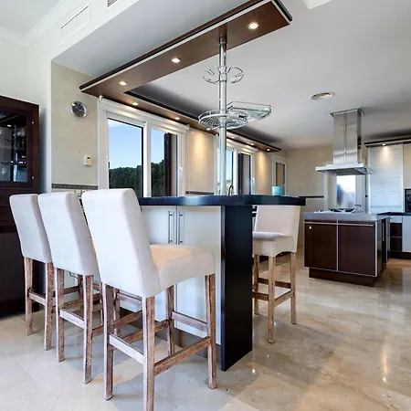 לןקמאג'ור Mediterranean Sea View 5 Bedroom Villa ממוקמת במרחק של 25 דקות הליכה מ-Centre Comercial Maioris וכ-20 דקות הליכה מ-Parroquia Santa Maria. אורחים יכולים ליהנות מבריכת שחייה פרטית ולהכין ארוחות משלהם במטבח מאובזר .